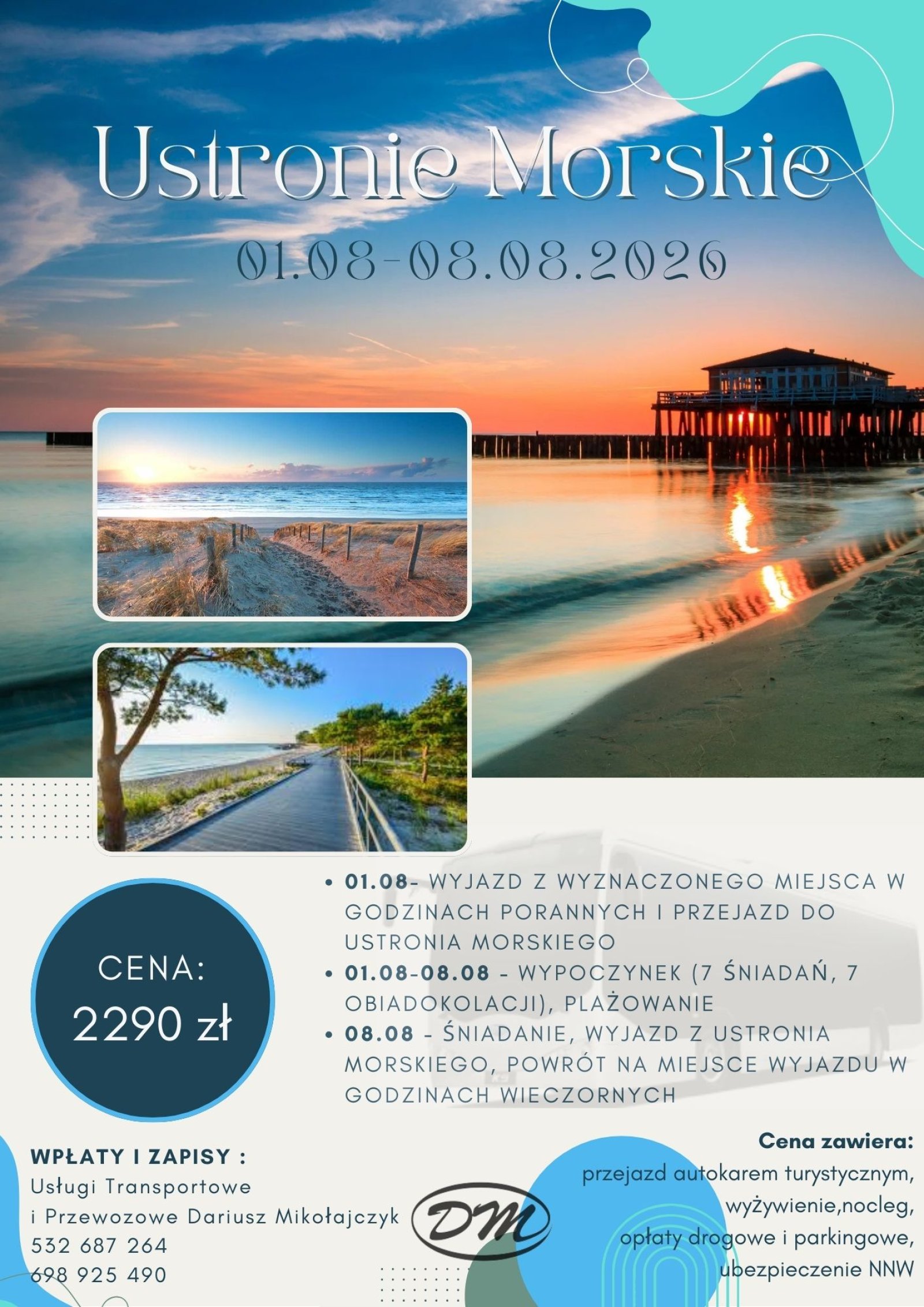 08.08 - śniadanie, wyjazd z Ustronia Morskiego, powrót na miejsce wyjazdu w godzinach wieczornych.
