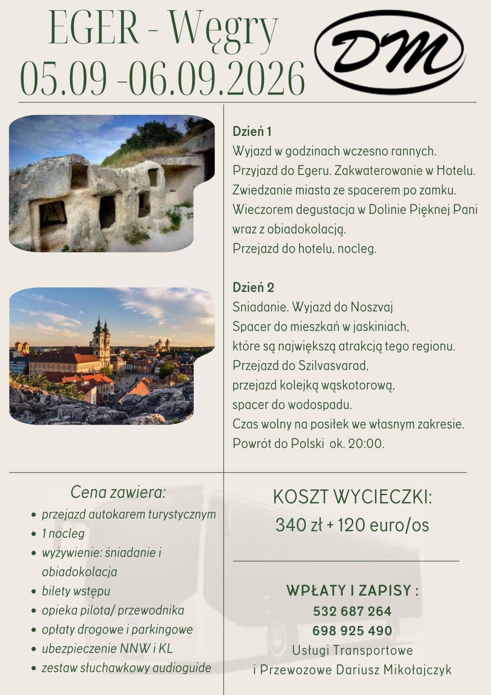 CENA: 340 zł/os + 120 euro/os