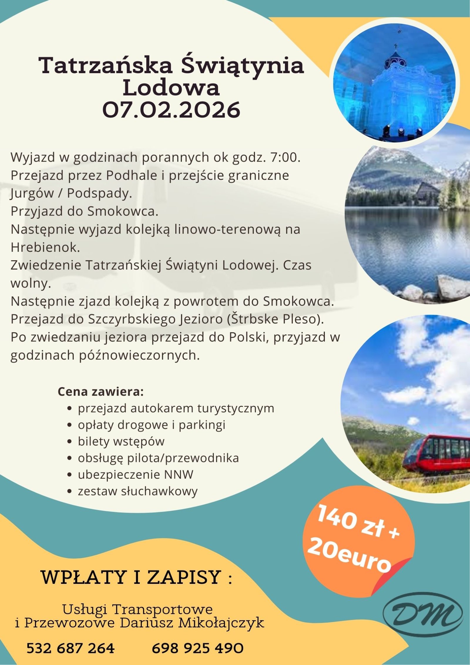 Koszt wycieczki: 140 zł + 20 euro/os