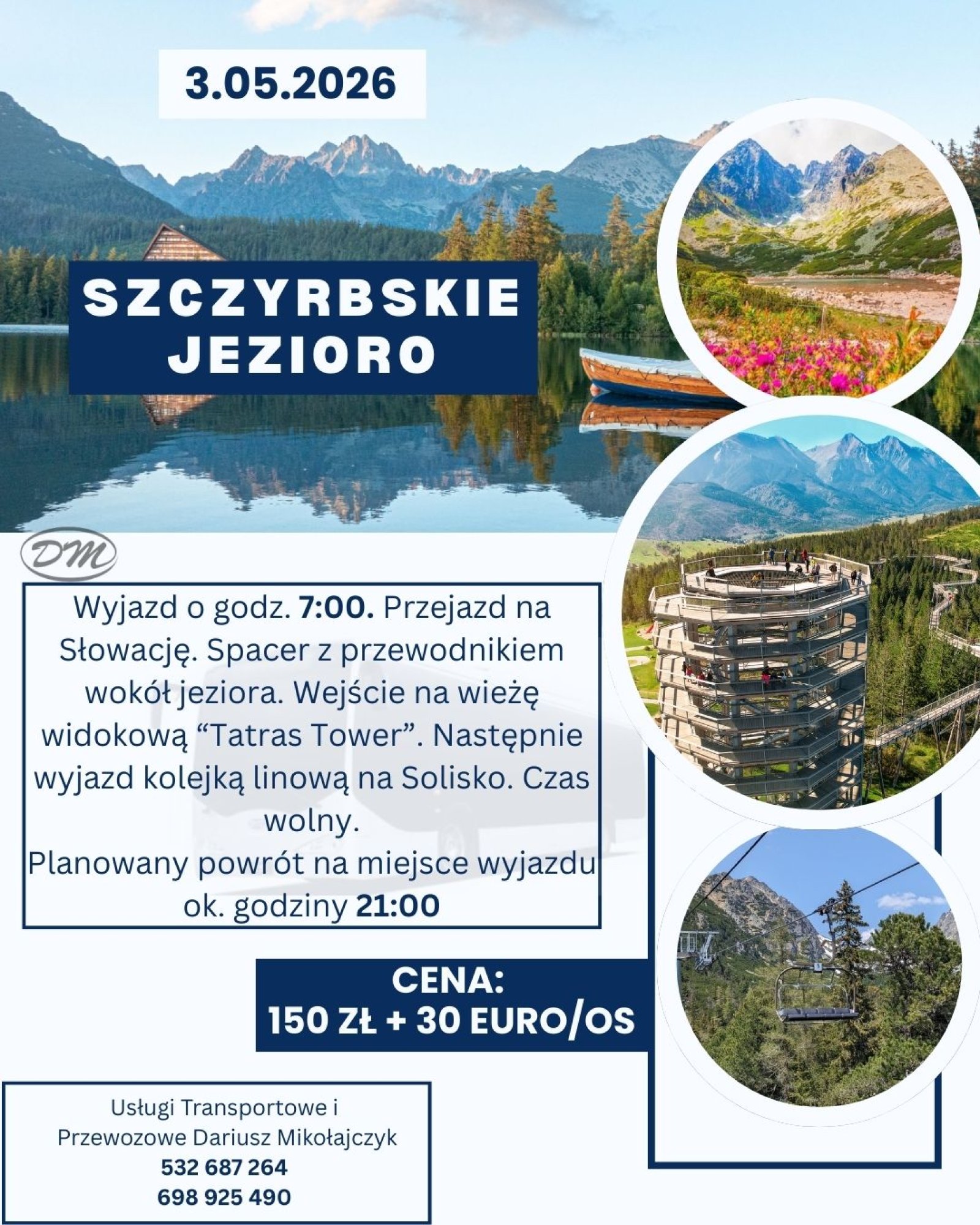 Wyjazd o godz. 7:00 z wyznaczonego miejsca (Woźniki, Wadowice).