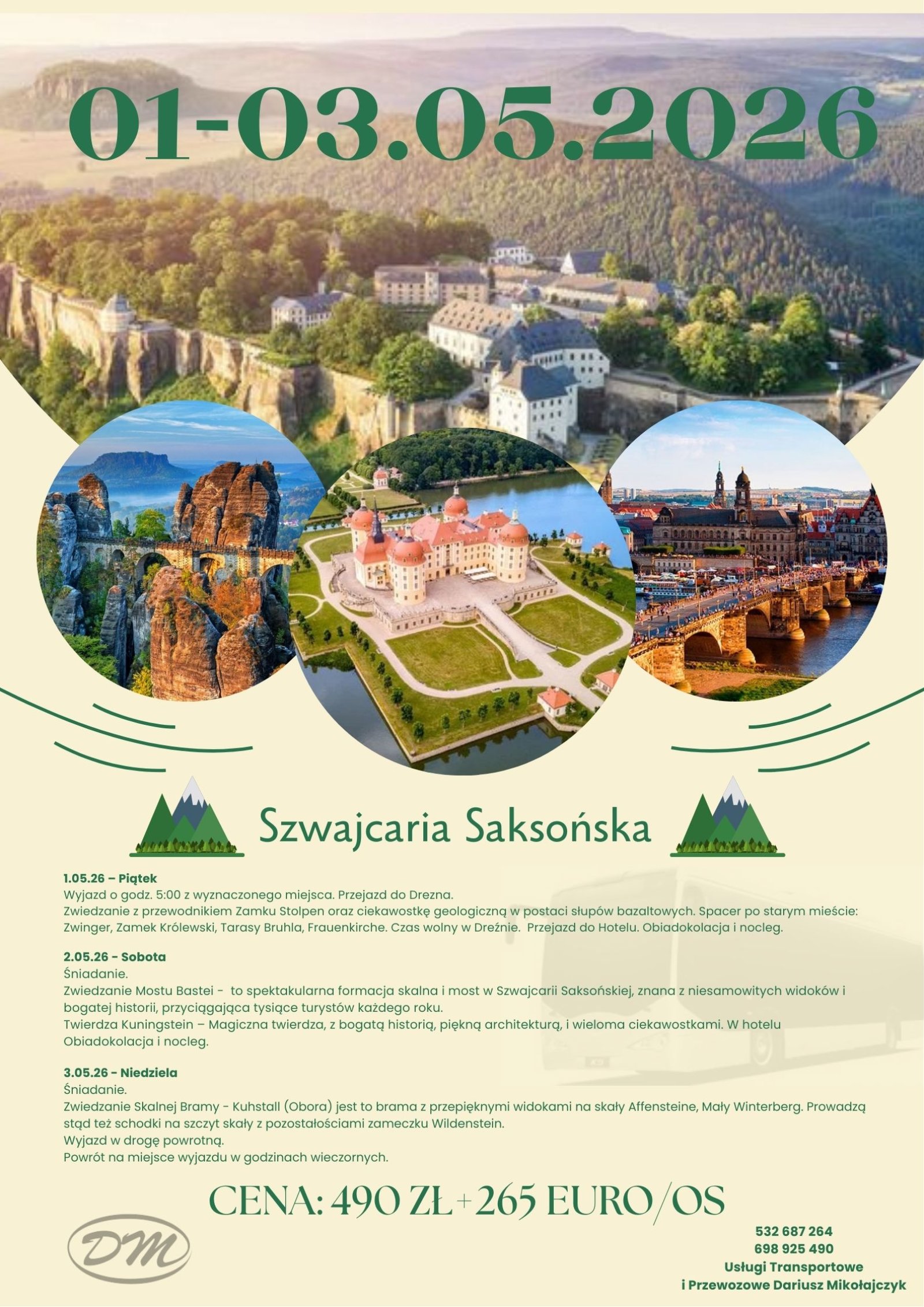 Wyjazd o godz. 5:00 z wyznaczonego miejsca (Woźniki lub Wadowice). Przejazd do Drezna.