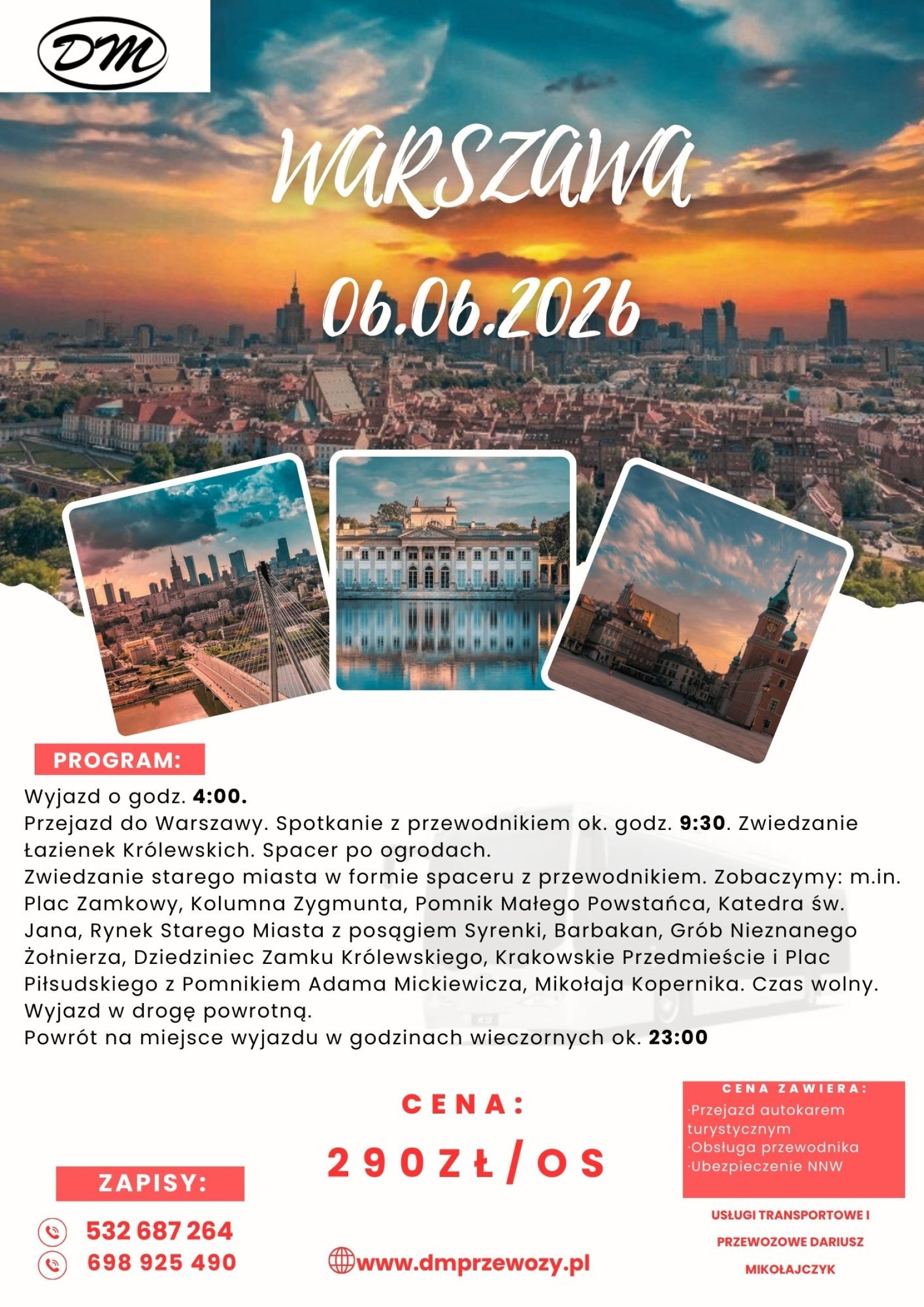 Zwiedzanie starego miasta w formie spaceru z przewodnikiem. Zobaczymy: m.in. Plac Zamkowy, Kolumna Zygmunta, Pomnik Małego Powstańca, Katedra św. Jana, Rynek Starego Miasta z posągiem Syrenki, Barbakan, Grób Nieznanego Żołnierza, Dziedziniec Zamku Królewskiego, Krakowskie Przedmieście i Plac Piłsudskiego z Pomnikiem Adama Mickiewicza, Mikołaja Kopernika.