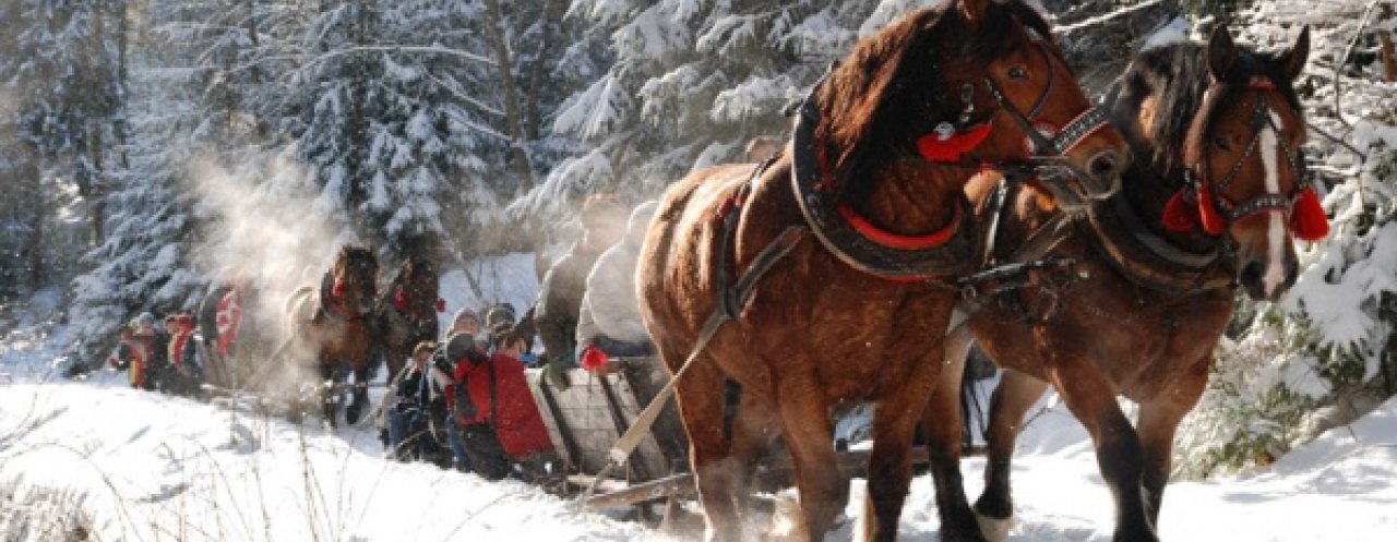 12:00 – Wyjazd z Wadowic. Przejazd do Wisły, kulig po pięknych okolicach. Po kuligu biesiada przy muzyce.
